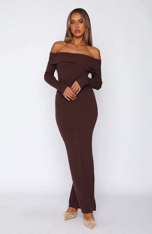 Don't Call Me Anymore Long Sleeve Maxi Dress Chocolate